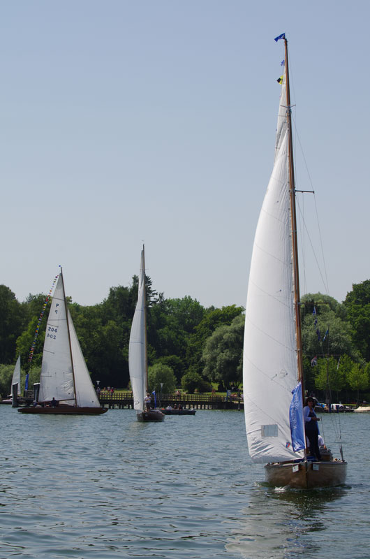 Alle, die nicht dabei sein konnten, haben ein einmaliges Schauspiel verpasst: Bei strahlendem Sonnenschein und konstanten 2 Windstärken trafen sich zu Ehren der Yacht CONDOR etliche Traditionsschiffe vor der ANDECHS, dem Vereinsheim der Bayerischen Seglervereinigung. Darunter waren etliche 45er Nationale Kreuzer, sozusagen "jüngere Geschwister" der CONDOR (P57, Altschwabing von 1920, P106, Argo, P204, Thimalus), der 35er Nationale Kreuzer WAGGI, T66, die Yawl STURMVOGEL der BSV, sowie die Veteranin PINTA und der 40qm Schärenkreuzer GRAF LUCKNER.