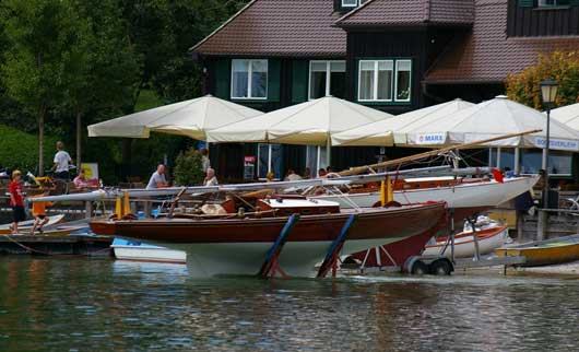Am Samstag ging es dann schon um halb 10 Uhr aufs Wasser. Das Wetter hatte sich zwar verbessert, bloß leider trat damit auch die für den Ammersee nicht untypische Flautenstimmung ein. Den ganzen Vormittag über gab es nur hin und wieder etwas Wind aus Süden, so dass erst nach der Mittagspause ein neuer Versuch gelang. Zwar gelang ein Start bei ca. 1-2 Bft nur war der Wind leider nicht beständig genug, so dass die Wettfahrt – zu unserem Pech, da wir mit dem Thimalus diesmal auf Platz 1 lagen – abgeschossen wurde. Gegen 4 gelang es dann doch noch eine ganze vierte Wettfahrt durchzuführen, wobei der Wind auch diesmal gegen Ende komplett eingeschlafen ist. Im Ergebnis war dies dann auch die einzige, bei der das Führungsduo, das auch den Gesamtsieg unter sich ausmachte, vom Thimalus unterbrochen wurde.