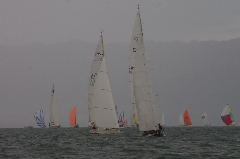 Auf dem Rückweg, als es wieder hell wurde, sahen wir, wie nah diverse 45er nach so vielen Stunden beieinander lagen und es jetzt auf ein wenig Glück ankam, wer die richtigen Windstriche erwischte. Bis vor Langenargen lagen fast alle Boote (mit Ausnahme der 2 schnellsten) nah beieinander.