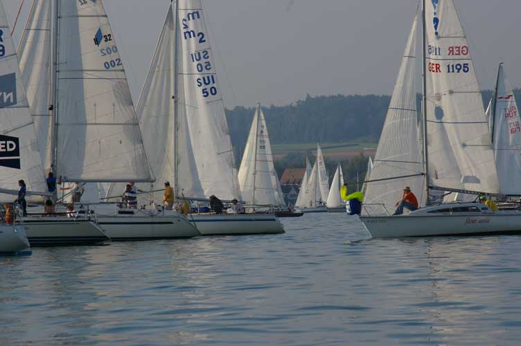 Immerhin, am Start im Konstanzer Trichter war zumindest keine totale Flaute, wie es schon früher des öfteren war. Trotzdem konnten die Mannschaften der gestarteten 224 Schiffe stundenlang die Fährschiffe Meersburg-Staad sehen.