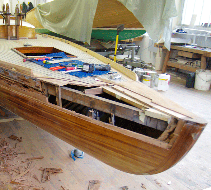 Bei Rambeck in Starnberg wird derzeit die Mona Lisa, P165, generalüberholt. Das Schiff, das ursprünglich am Zürcher See lag, ist seit drei Jahren am Starnberger See und wird jetzt einer gründlichen Restaurierung unterzogen. Der Suter- + Portierbau bekommt ein neues Deck und wird bald wieder in alter Schönheit erstrahlen. Auch der Mast wird neu. Die neue Peitsche liegt schon bereit und wartet auf die vielen Lackschichten und die Beschläge.